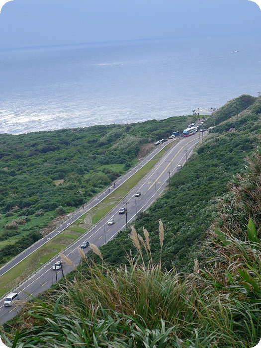 以及臨高鳥瞰北部濱海公路上的來往車輛,
