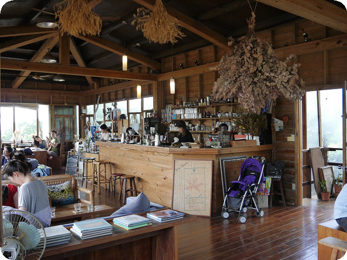▲石牆內咖啡內空間一覽,隨處可見的木製品帶來休閒慵懶風......